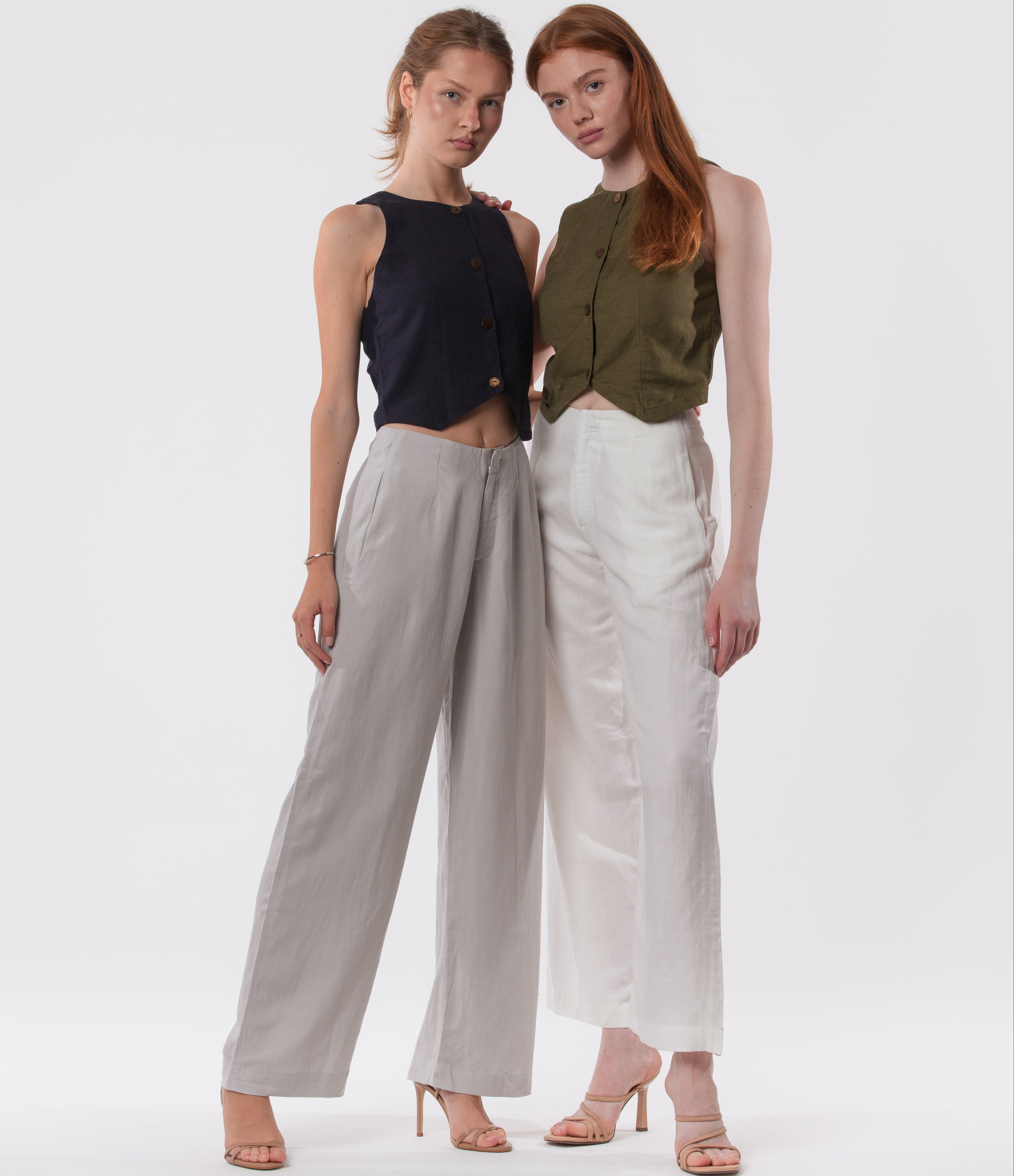 The Apartment Pants – High-Rise Wide-Leg Linen Blend Pants